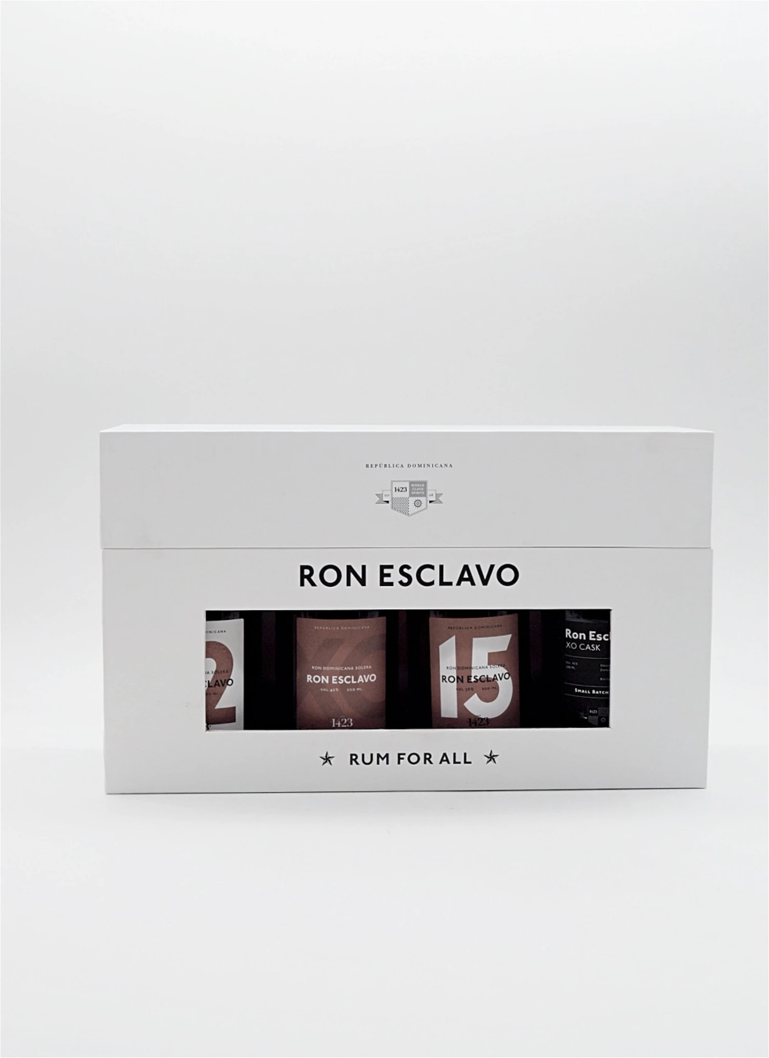 Ron Esclavo ist eine Solera-Rumserie aus der Dominikanischen Republik, gemischt von Oliver & Oliver für 1423. Die vier Rumsorten dieser Serie sind süß, weich und sehr angenehm zu trinken. Geschmack, Duft und Alkoholstärke variieren, doch alle vier Ron Esclavo Produkte sind durch zarte Noten von Vanille, Karamell und Eiche gekennzeichnet.