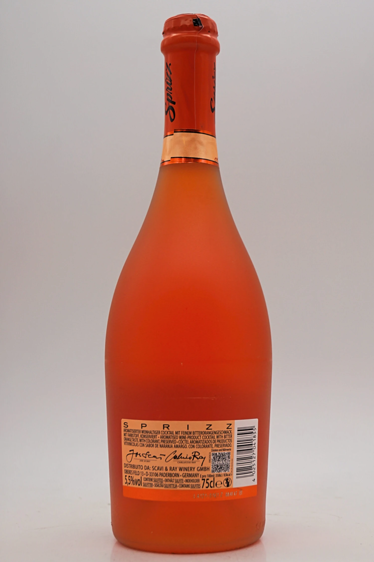 Der Scavi & Ray SPRIZZIONE ist ein absoluter Premium-Aperitif aus Prosecco, Bitter-Orangen-Likör und Orangenspalten, der mit aufregender Frische überrascht. Das mediterrane, weinhaltige Mixgetränk sorgt durch seine überzeugend arrangierte Bitterorange für einen prickelnden Genuss. Sauber und saftig am Gaumen, sauber in der Nase mit Nuancen von Grapefruit und floralen Orangennoten. Seine verhaltene Säure entfaltet sich wunderbar bei einem moderaten Alkoholgehalt von 5,5 % Vol..