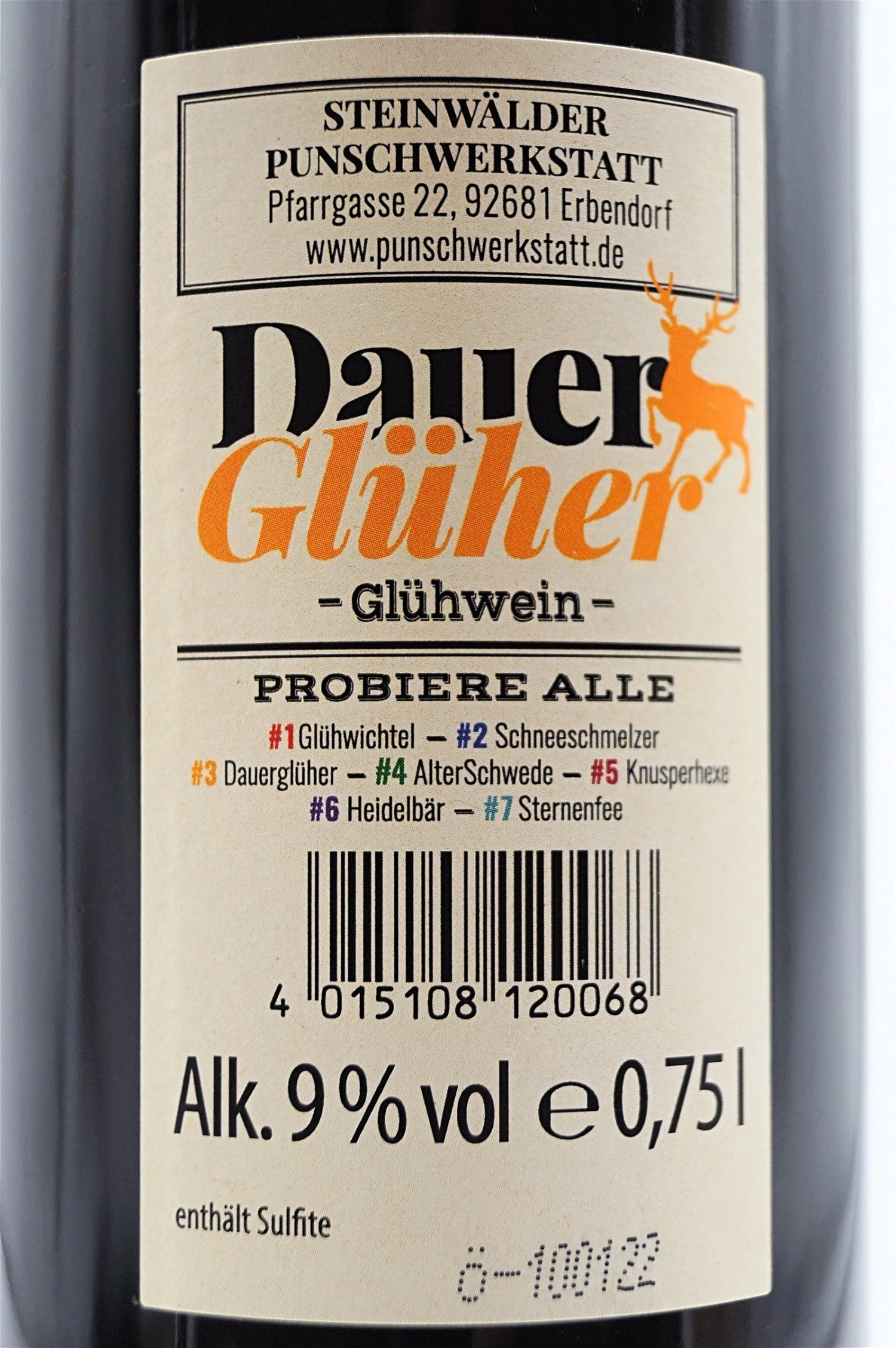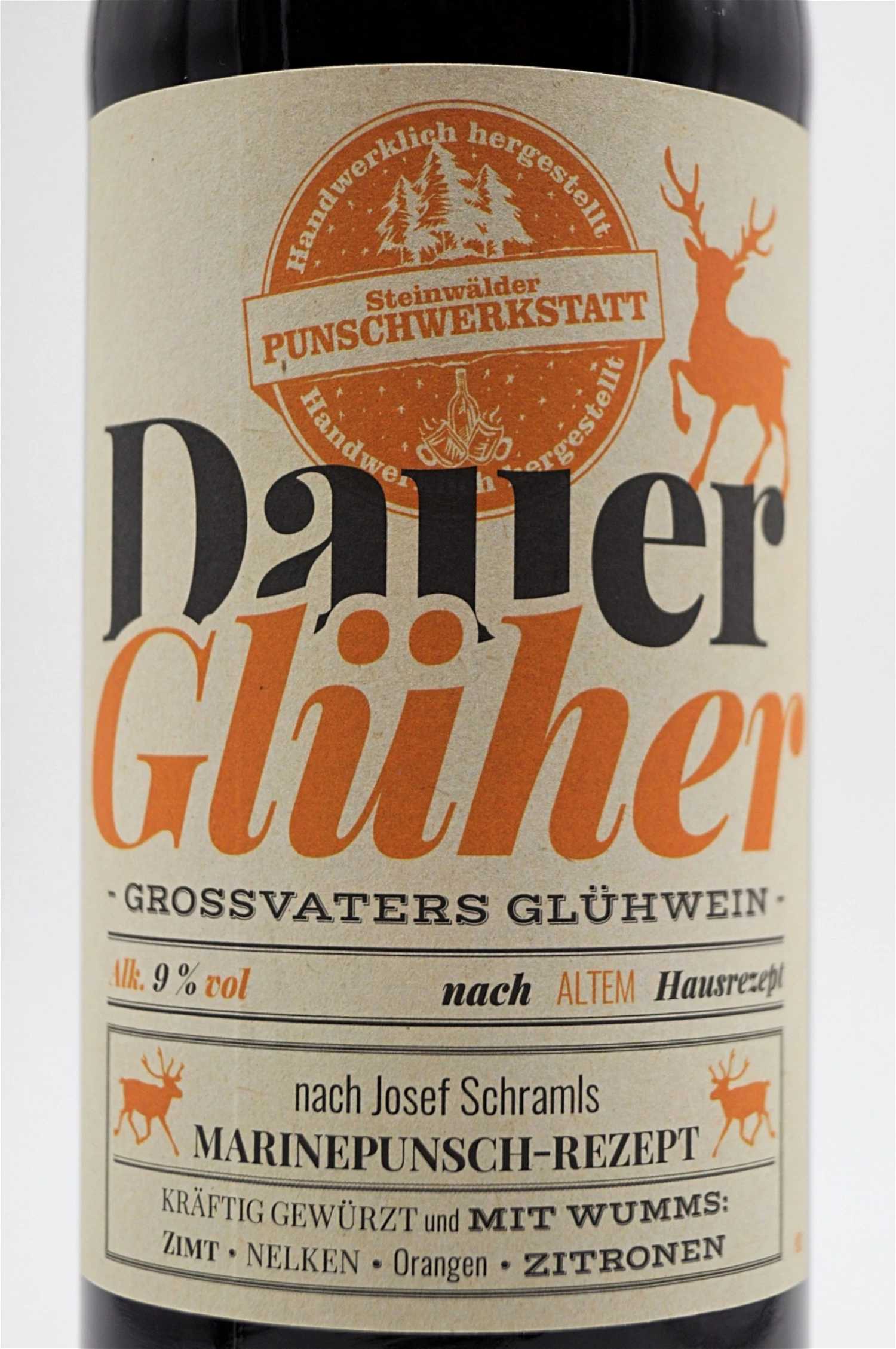 Er repräsentiert Großvaters Glühwein, der nach einem uralten Marinepunsch-Rezept hergestellt wird. Kräftig gewürzt und dadurch intensiv im Geschmack, enthält dieser Glühwein ein bisschen mehr von allem. Hochwertiger Rotwein, gepaart mit Zimt, Nelken, Orangen und Zitronen, ergeben eine Geschmackskomposition für einen kräftigen Glühwein der besonderen Sorte. Der DauerGlüher gilt als das ideale Getränk für stimmungsvolle Winterabende.
