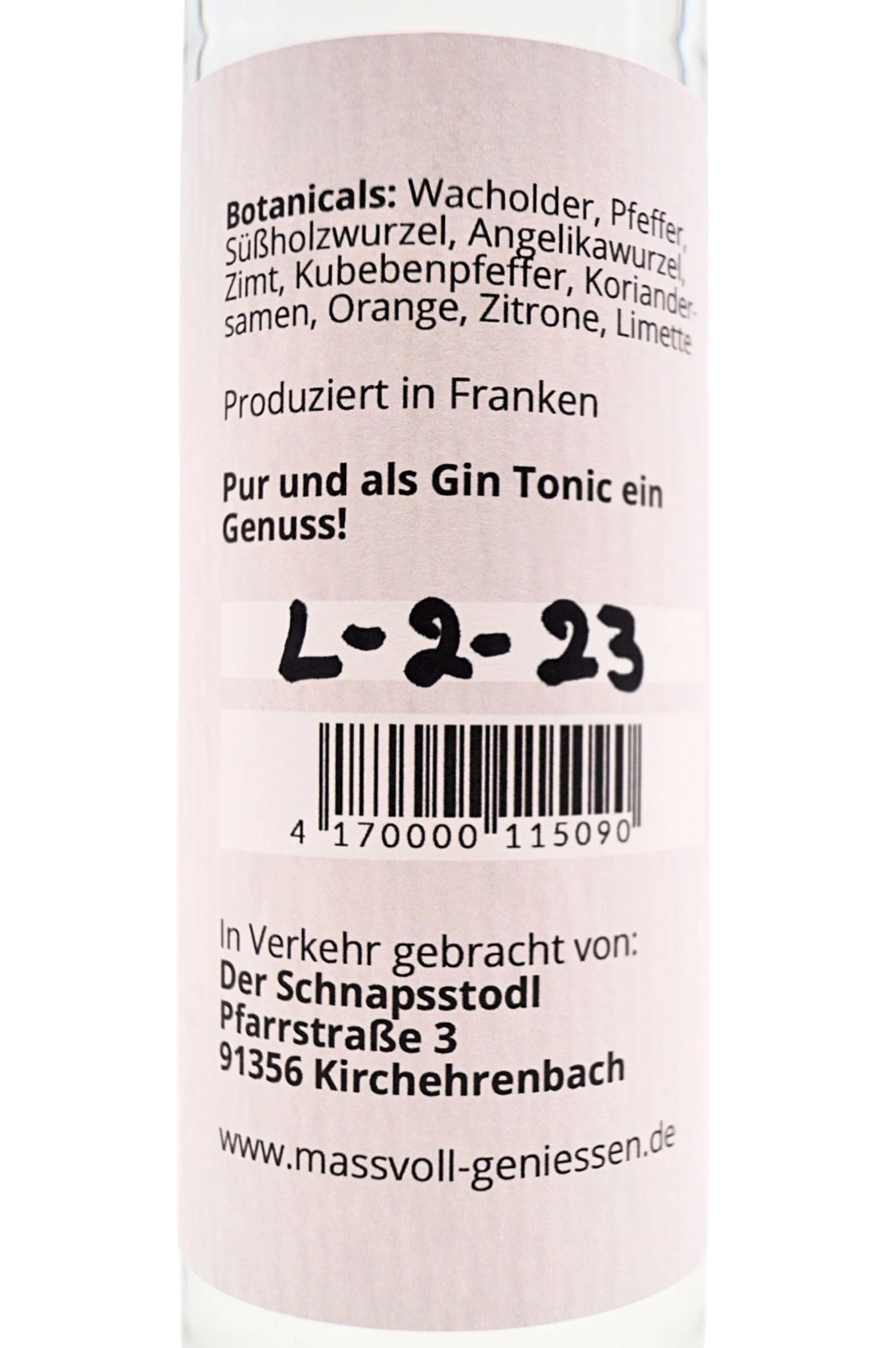 Unser London Dry Gin wird in Franken produziert und mit feinsten Botanicals wie Wacholder, Pfeffer, Süßholzwurzel, Angelikawurzel, Zimt, Kubebenpfeffer, Koriandersamen, Orange, Zitrone und Limette verfeinert. Dieser Gin wird in einer 0,5 Liter Flasche und 40% Vol. Alkohol abgefüllt. Natürlich nur bei uns zu kaufen und das Beste: er wird dauerhaft im Sortiment bleiben!